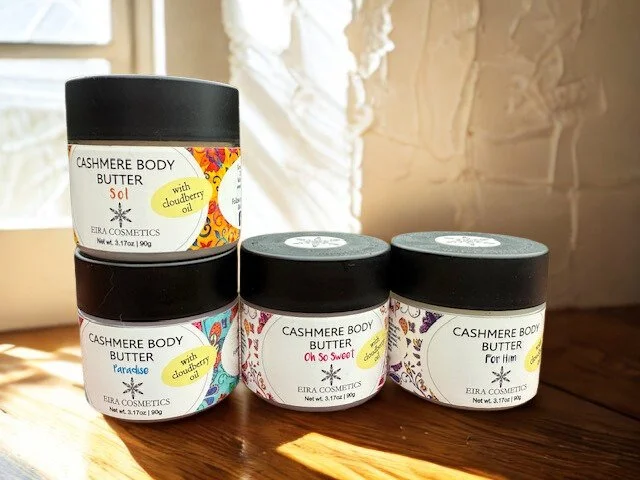 Shop Categories: All Accessories Shower and Bath Lip Care Face Care Body Care All | Accessories | Shower and Bath | Lip Care | Face Care | Body Care | Eira's Body Wash $20.00 Eira's Body Lotion $30.00 Foaming Body Scrub $25.00 Lip Scrub $10.00 Cashmere for your lips Lip Balm $5.00 Plumping Lip Mask $15.00 Cashmere Body Butter $30.00 Niacinamide Face Wash $15.00 Morning Mousse Face Cream $35.00 Vegan Hand Cream $25.00 Youthful Face Cream $35.00